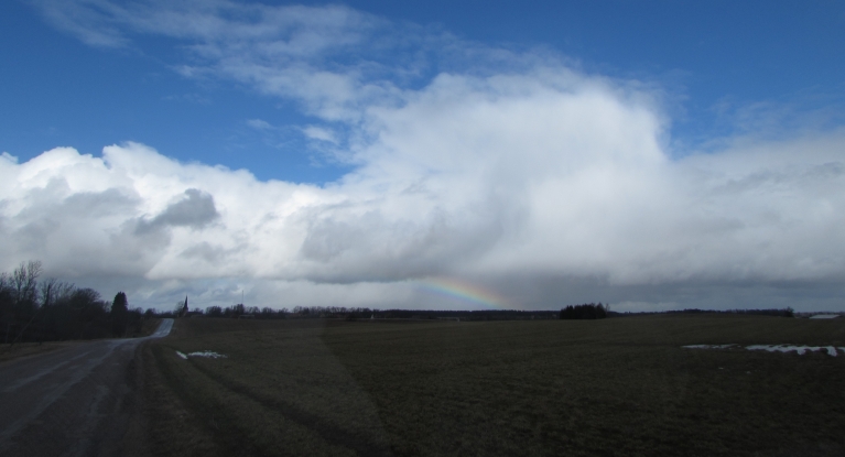 Vēl viena varavīksne:)Jauka....un mākoņi iespaidīgi.Mazliet tā kā pēc rudens...., teiksim, pēc bildēm vien būtu grūti noteikt gadalaiku:)