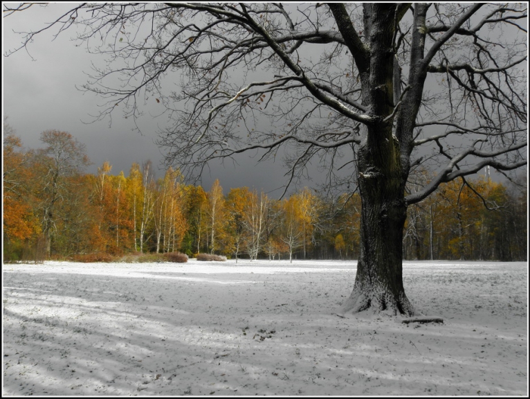 Nē, vienkārši apnikusi vienmuļā pelēcība! Skaista tā bilde ar dzeltenām lapām uz balta sniega...