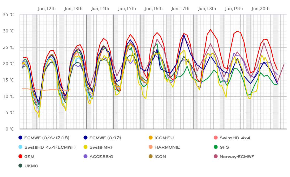 Pirmssvētku nedēļā Latvijā prognozēts vasarīgi silts, pat karsts laiks ar gaisa temperatūru virs klimatiskās normas. Vēl pāris naktis nedēļas sākumā būs salīdzinoši vēsas, taču nedēļas otrajā pusē arī tās varēs saukt par teju vasarīgi siltām, bet dienas laikā termometra stabiņš rādīs starp +25 ... +30 grādiem, vienīgi nedēļas pirmajās dienās vēl +20 ... +25 C. Šī raksta tapšanas brīdī atšķirīgas prognozes starp GFS un ECMWF kopumā ir tikai par laiku daļā DR Kurzemes, kur iespējami apmācies laiks ar lietu var kavēt gaisa iesilšanu.