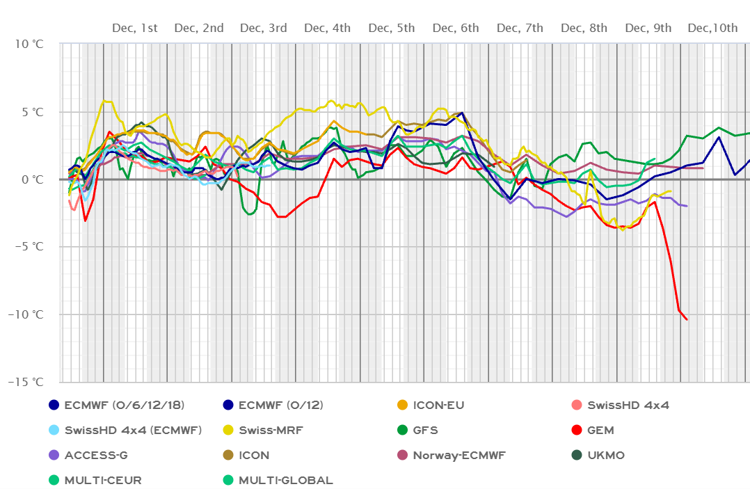 ECMWF prognozē, ka decembra otrā un trešā nedēļa būs vairākus grādus siltāka par normu. charts.ecmwf.int/products/ext...