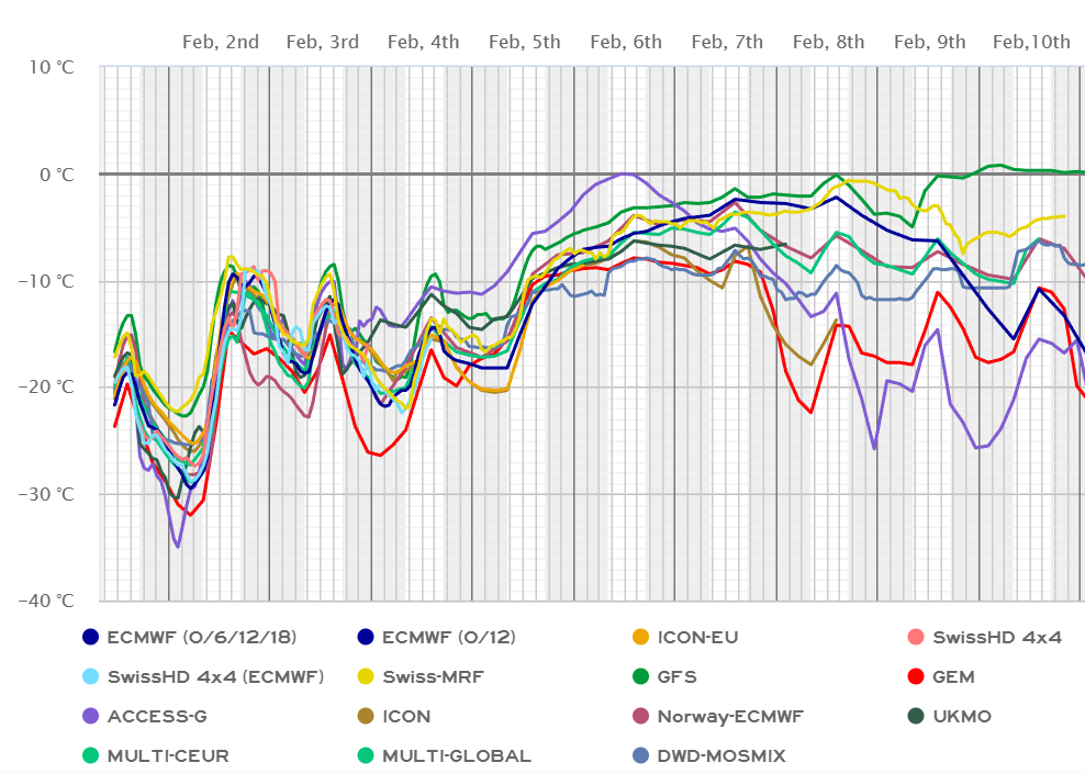 Ceturtdienas rīts visdrīzāk būs pēdējais šajā nedēļā, kad gaisa temperatūra vietām var pārsniegt -25 C atzīmi, jo piektdienas un sestdienas rītā pēc pašreizējām prognozēm nebūs aukstāks par -10 .. -4 C, līdzīga, par pāris gādiem augstāka temperatūra prognozēta arī dienas laikā, sestdien un svētdien siltākie scenāriji vietām Kurzemē prognozē pat 0 C. Gan jau patiesība būs kaut kur pa vidu. Tālākās prognozes paredz lielāku ciklonu ietekmi, bet tās nav vienisprātis - vai atgriezīsies mērens sals, vai februārim raksturīgāki laika apstākļi.