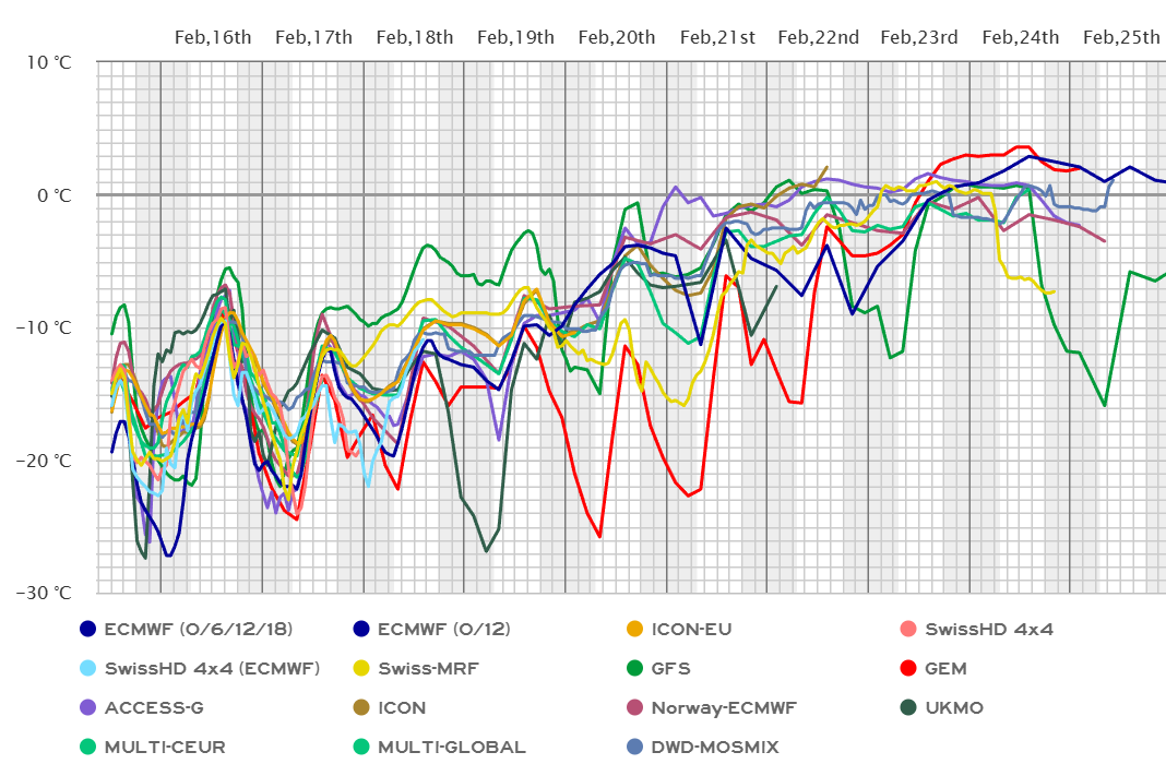 Pēc aukstā laika februāra vidū, nedēļas otrajā pusē pieaug ciklonu iespējamība, kas varētu ienest pie mums kā brāzmainus vējus, tā arī nokrišņus un siltāku gaisu. Lai gan kārtējo reizi ap 23. februāri tiek pieļauta atkušņa iespējamība, tālo prognožu ticamība ir vērtējama kā zema, turklāt šoreiz pat 2 - 3 dienām uz priekšu tās ir gana atšķirīgas. Proti, turpināsies nu jau ierastā visai plašā gaisa temperatūras amplitūda teju 30 grādu robežās no barga sala pirmdienas rītā līdz siltākam laikam brīvdienās.