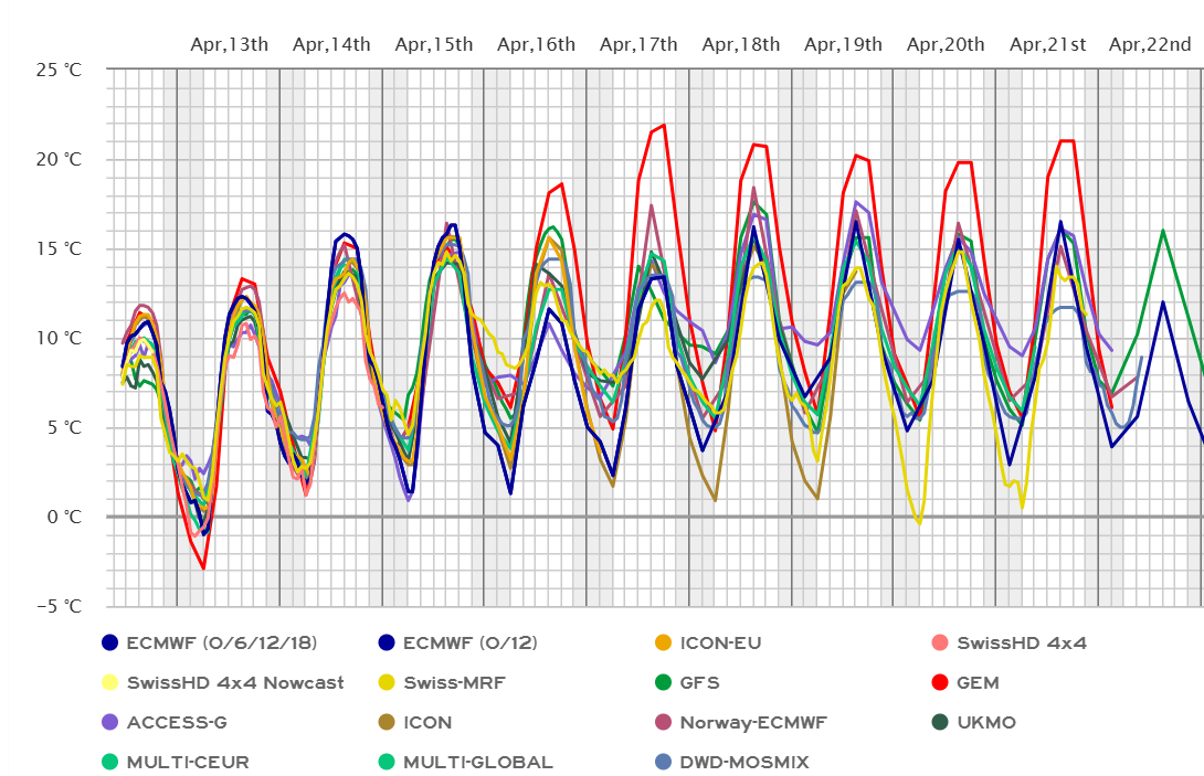 Aprīļa vidū laika apstākļus Latvijā ietekmēs galvenokārt anticiklons, attiecīgi laiks kopumā būs patīkams, jo ir cerības uz biežu saules parādīšanos. Lai gan pirmdienas rītā gaisa temperatūra vēl vietām var pazemināties līdz nulle grādu atzīmei, nedēļas atlikušajā daļā tā tikai paaugstināsies un kā dienas, tā nakts laikā variēs visbiežāk starp +5 ... +17 C atzīmi, ne tik siltas dienas būs daudzviet līča rietumu piekrastē. Pirms brīvdienām pastāv nokrišņu iespējamība, bet prognozes vēl ir atšķirīgas. Nedēļas izskaņā visai ticami, galvenokārt rietumu daļā, gaiss var iesilt arī līdz +20 C.